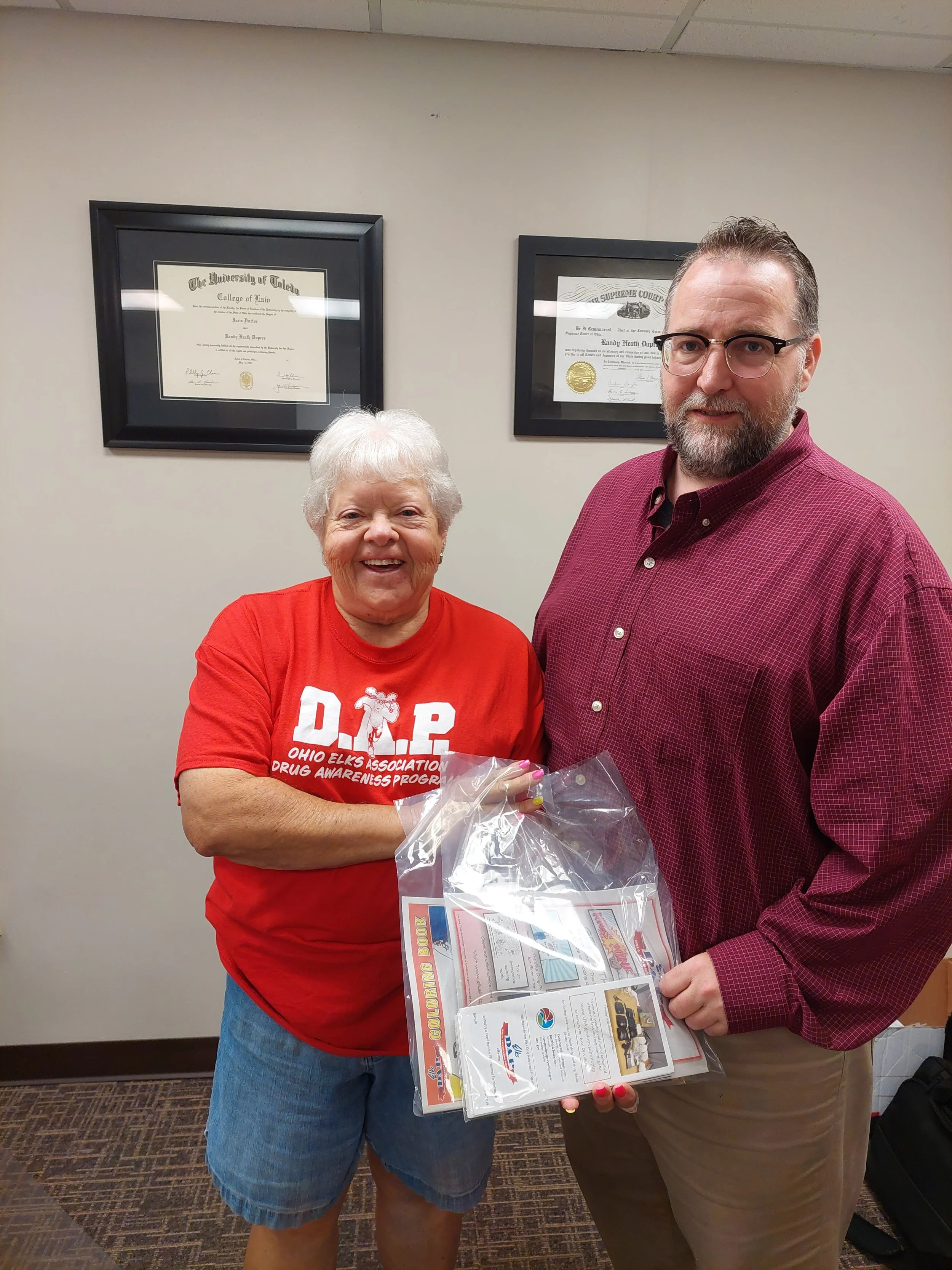 Sharon Brown, Drug Awareness Chair at Jackson Lodge #466, met with the Jackson Co. Prosecuting Attorney, Randy DuPree. We discussed the importance of educating Grand Jury Members on all illegal drugs. This will help the officers presenting drug cases to them. Prosecutor DuPree took 50 Drug Awareness packets.
